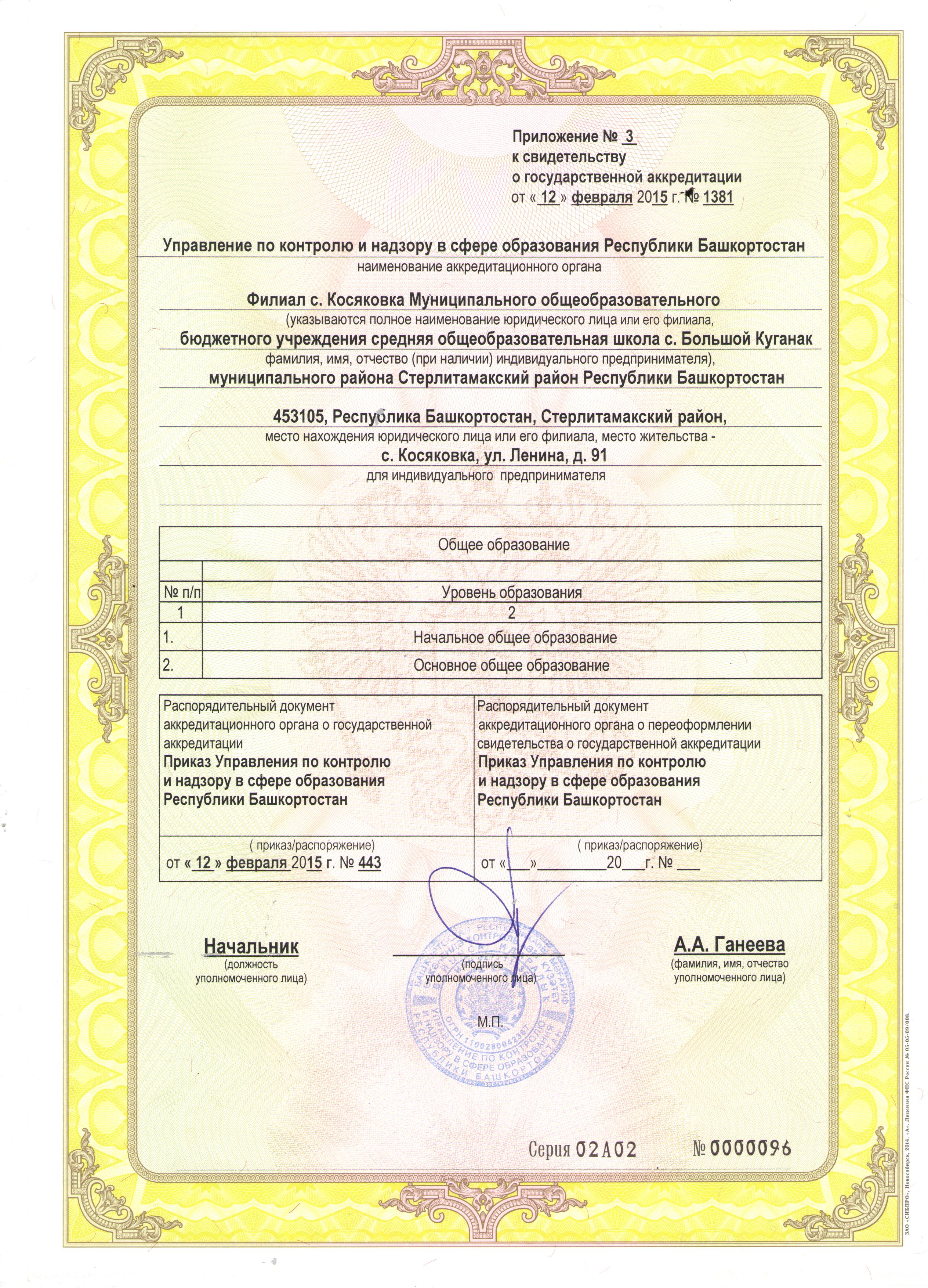 Свидетельство о государственной аккредитации с приложениями